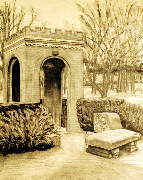 Drawing of Lombard College bell tower at Knox College circa 2010 by Knox alumnus, Jason Connell.